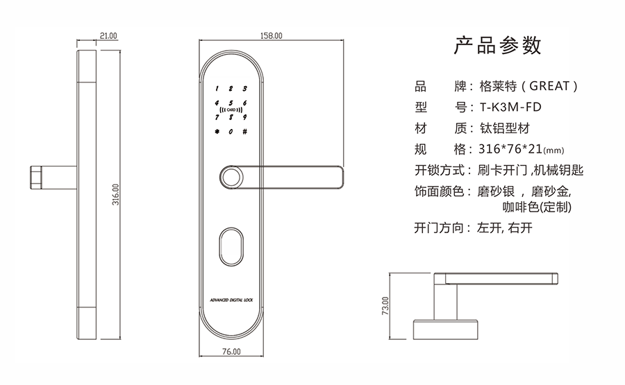 T-K3M-FD蓝牙密码防盗锁